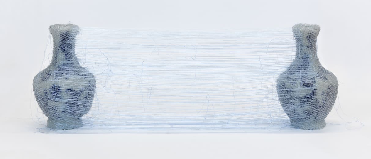 Caption for header image: Katie Mongoven, Vintage Handmade Liling China Blue & White Miniature Vase 020325 (Ghost), 2025. On view at Grand Palais.